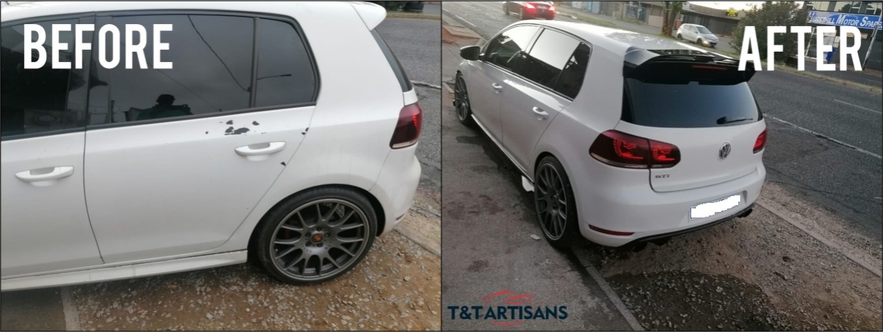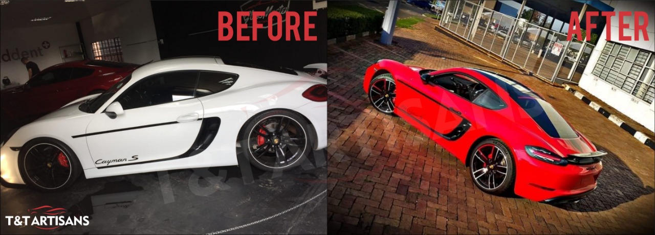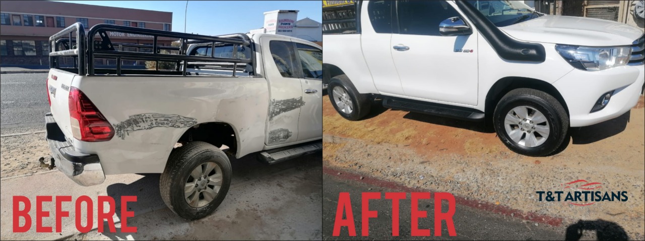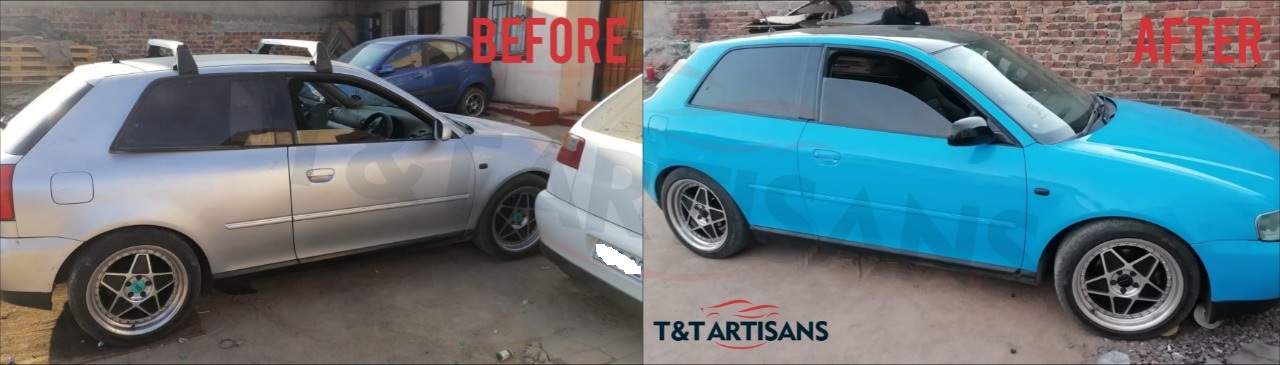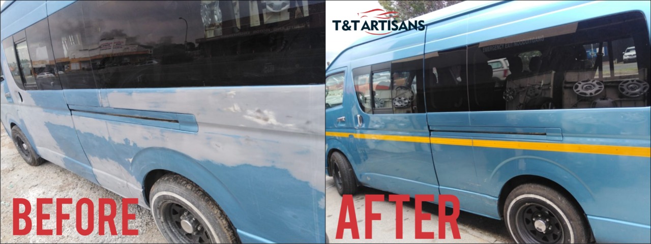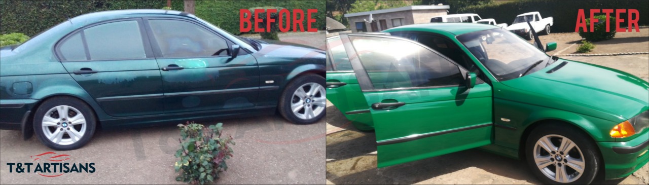 A process that involves stripping off dust and rust to prepare a vehicle for painting. Painting to a vehicle is done with a spray gun.